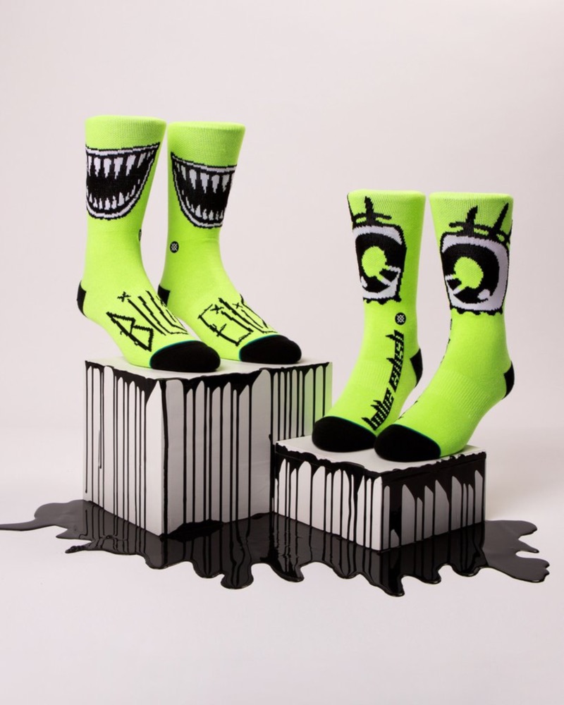 Billie Eilish actualmente se encuentra en la cima de la música y en esta colaboración junto a Stance, demuestra sus cualidades como artista gráfica. La cara del personaje Babadook está dibujada a mano por la mismísima Billie Eilish.