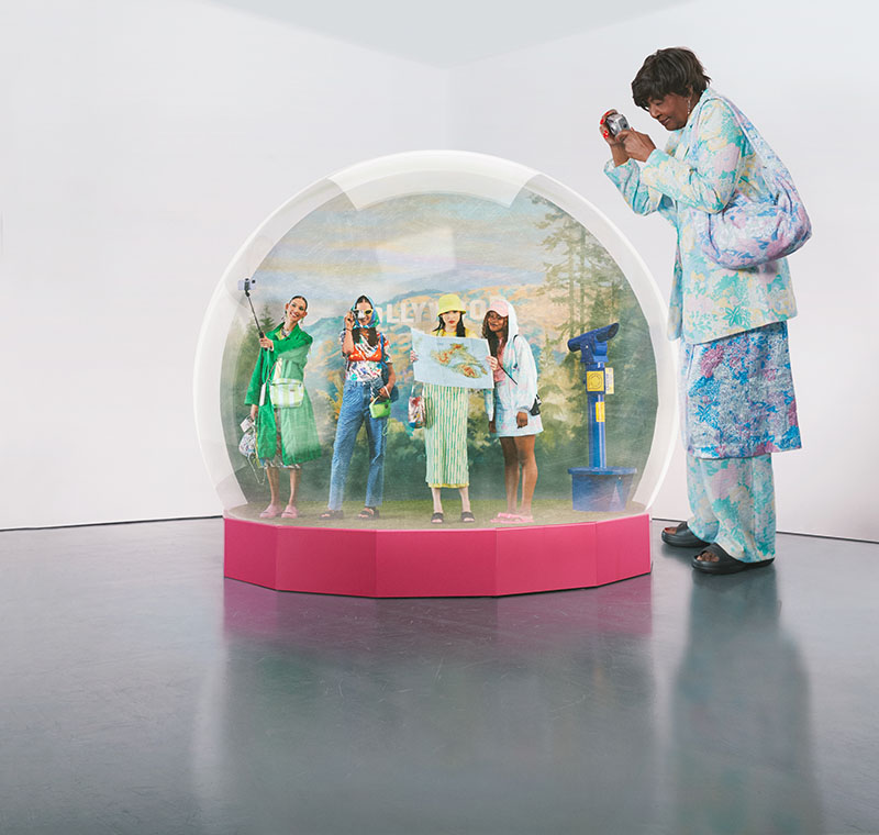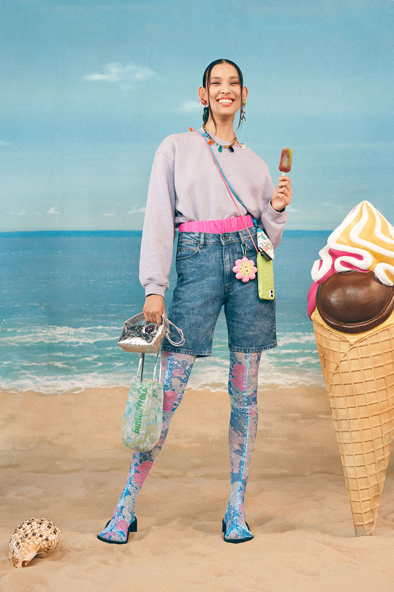 Los modelos que habitan en estas bolas de nieve aparecen luciendo las nuevas prendas y accesorios de la colección SS22 de Bimba y Lola, en las que reconocemos una gran explosión de color a través de materiales y prints muy variados que van desde el crochet, pasando los estampados florales, hasta elementos marítimos. Un conjunto de recuerdos “à la Bimba” con una estética kitsch muy teatral y recargada.