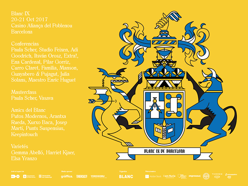 Los días 20 y 21 de Octubre arranca en Barcelona la 9ª edición de Blanc Festival, un festival multidisciplinar en el que se unen diseñadores gráficos, diseñadores de moda, ilustradores, diseñadores de producto que darán masterclass, conferencias y talleres. En esta edición cuentan con estrellas del diseño nacionales e internacionales como Paula Scher -editora de Pentagram-, Ena Cardenal, Extra!, Curro Claret, Enric Huguet, Adi Goodrich o István Orosz, y estudios como Vasava, Manson, Feixen, Putos Modernos o Subasta Gráfica. El diseño está en todas partes, y por ello, en la sección Varietés nos encontraremos con conferencias de Harriet Kjaer -luthier-, Elsa Yranco, -food designer- y Gemma Abelló -terapeuta artística y creativa-. Además, se celebrará el premio CREMA al talento emergente en Diseño Gráfico para descubrir a los nuevas generaciones y propuestas del momento.