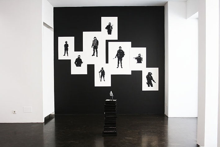 500 libros lacados en negro forman una gran barricada. En la pared, acuarelas y gouaches sobre papel retratan instantes de tensión y la violencia de un conflicto. BlockHouse. Sobre la construcción de un espacio de resistencia en tiempos de indolencia, la instalación escultórica que Avelino Sala ha realizado para la Galería Raquel Ponce, toma su energía de un momento de vacío, de crisis, de indolencia, en el que resurgen los movimientos de reacción. Es aquí y ahora cuando el arte propone, en palabras del creador, «la construcción de mapas sobre este nuevo territorio, de una nueva cartografia, para comprender la realidad que vivimos».