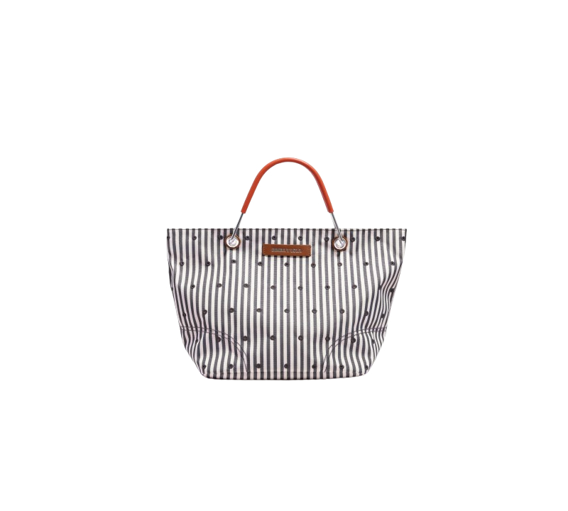 Bimba y Lola ha diseñado su bolso con estampado a rayas y charms pensando en todo: lo puedes llevar tanto a la oficina como a la playa.