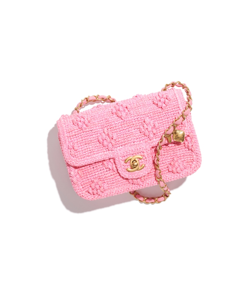 Esta nueva colección nos propone los míticos bolsos con solapa en tweed, pero con un punto más de construcción. La lana queda de lad y en su lugar, fibras de PVC se emplean para construir el intricado tejido. Sobre la textura a la que estamos acostumbrados, bordados de rombos se encargan de aportar un poco más de dimensión y volumen. Estas nuevas versiones del Classic Flap se presentan en rosa, azul celeste, camel y negro. Detalles habituales como el cierre metálico en dorado y la cadena entrelazada con piel se mantienen para balancear el look.
