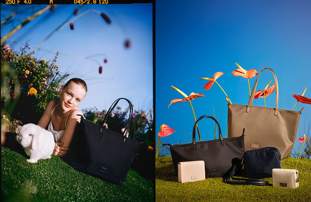 Modelos con textura de piel falsa de la colección de bolsos Faux Leather de Lefties