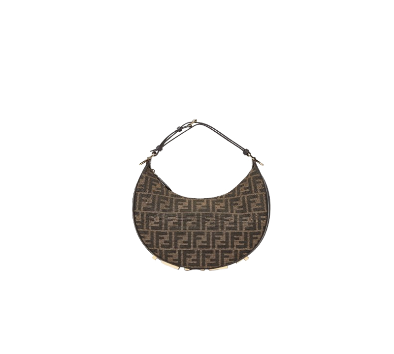 Hasta ahora, lo único que hemos tenido en cuenta es el tamaño de los bolsos. Este, que es el segundo de la lista, también es pequeño, pero probablemente el que más te encantará para cualquier ocasión. Su tamaño compacto en forma de luna y el estampado del logo de Fendi lo hacen único. Una tendencia muy dosmilera que sigue vigente en 2025 y que nos fascina. Además, fíjate en el detalle del metal dorado vintage en la parte inferior: ¡son las letras de Fendi!