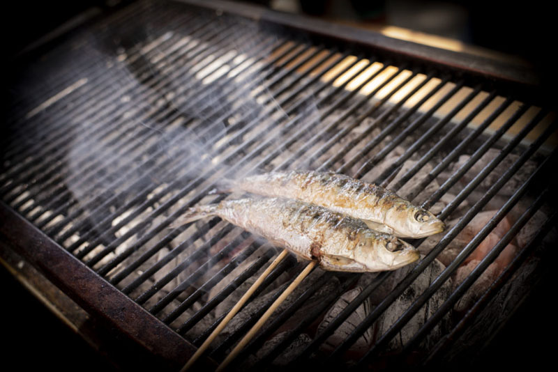 Sardinas a la parrilla con guindillas de Ibarra fritas
