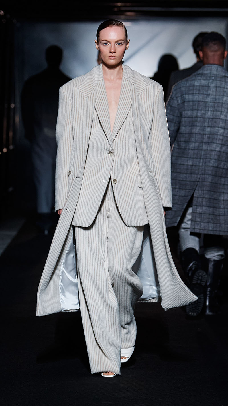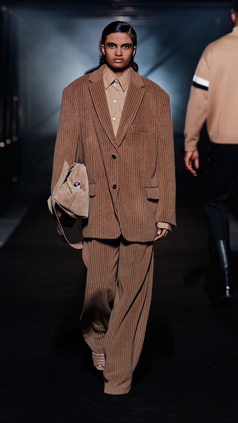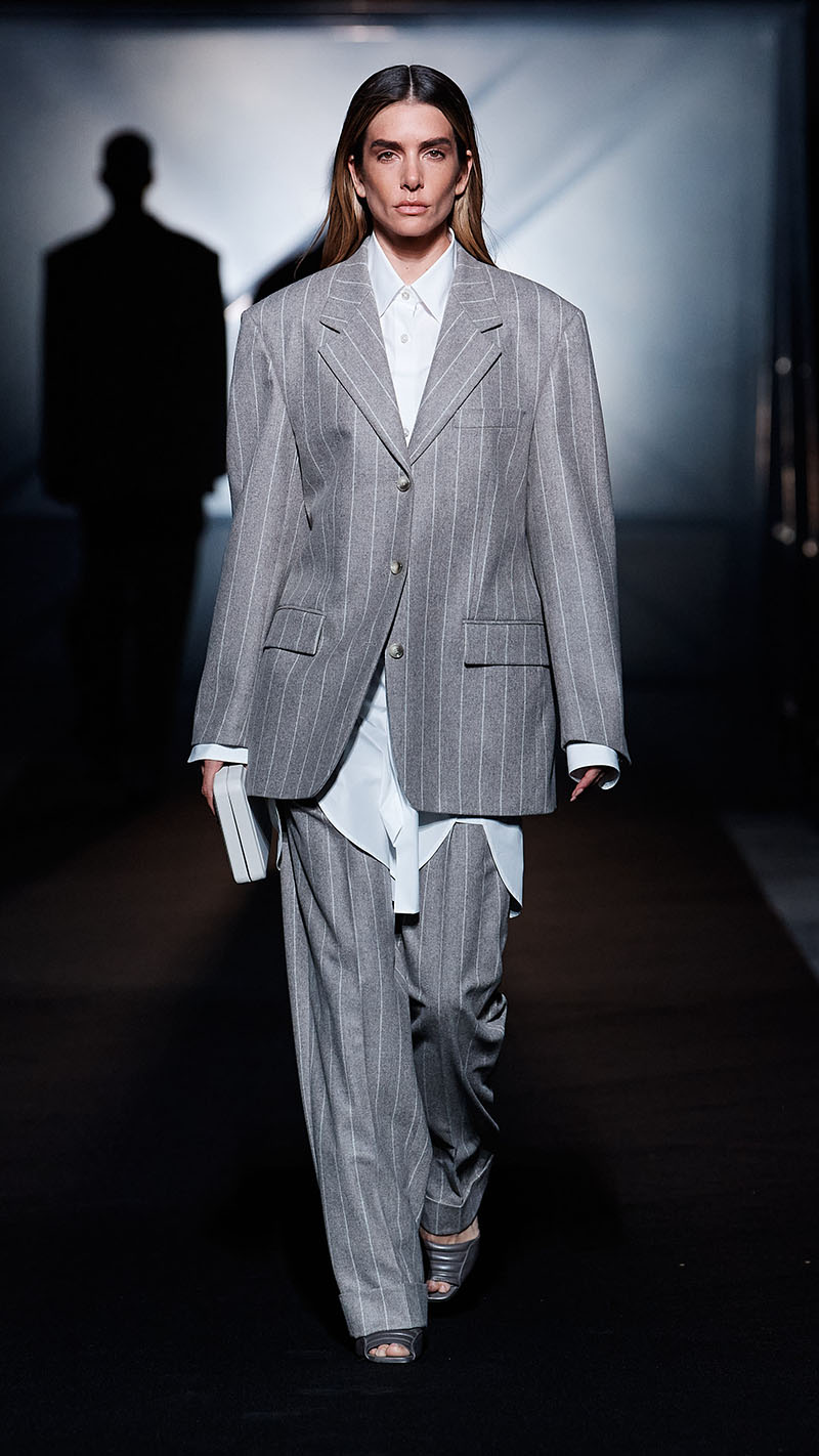 Los looks que recorrieron después el desfile están inspirados en los clásicos trajes de los 90 de BOSS que fueron concebidos para empoderar. Tras capturar esa esencia, han desarrollado el concepto de soft power, que más que hacer de las prendas un escudo inquebrantable, eleva la personalidad de cada uno para que se sienta vestido como un BOSS, independientemente de lo eso signifique para cada uno.