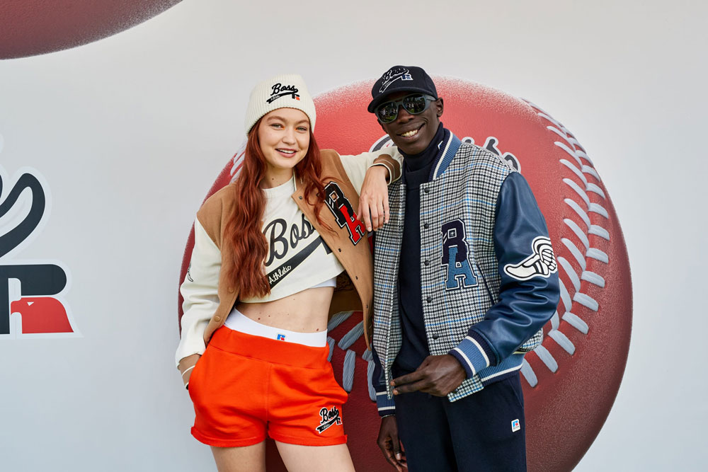 El show de BOSS y Russell Athletic convocó a más de 200 influencers, artistas, deportistas y top models. Entre ellos: Gigi Hadid, Cindy Bruna, Joan Smalls, Alpha Dia, Adut Akech, Alton Mason, Chiara Ferragni, Benji Krol, Avan Jogia, Fai Khadra, Fedez, Elevatorboys, Elisa Maino, Younes Zaraou, Alicia Schmidt… Y también la última sensación de TikTok, Khaby Lame, quien por primera vez se asocia de manera oficial con una gran marca de moda.