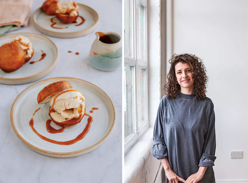 Imágenes superiores: A la izquierda, Bao buns fritos con helado de té con leches y caramelo. A la derecha, la autora del libro Pippa Middlehurst