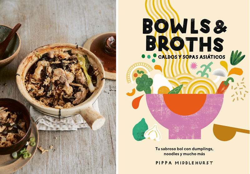 El libro Bowls & Broths se acaba de publicar en España y se podría traducir como: Cuencos y Caldos. En él nos encontramos con sabrosas recetas de comida asiática: desde sopas, pasando por noodles, dumpings o arroces y terminando con postres.