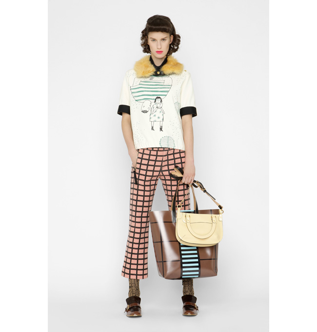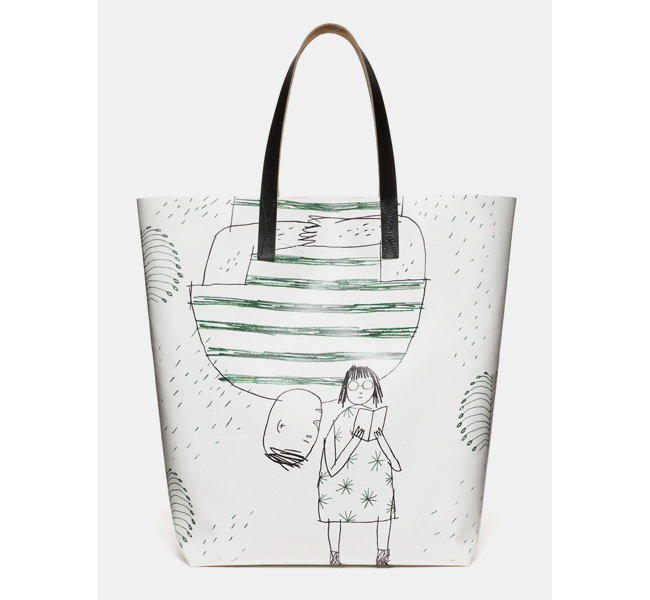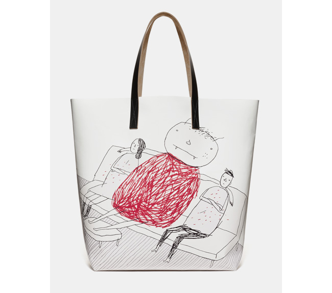 Ilustraciones de Brian Rea sobre bolsos y camisetas de la colección Marni Winter Edition 2012
