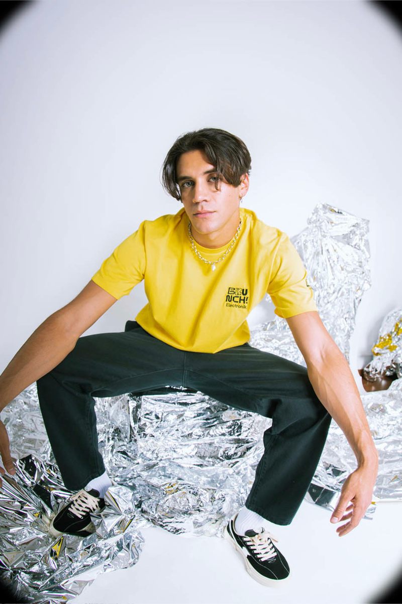 Esta camiseta amarilla de Brunc Electronik con prendas de verano e invierno. Está disponible en la página web.