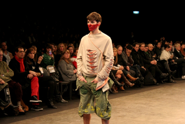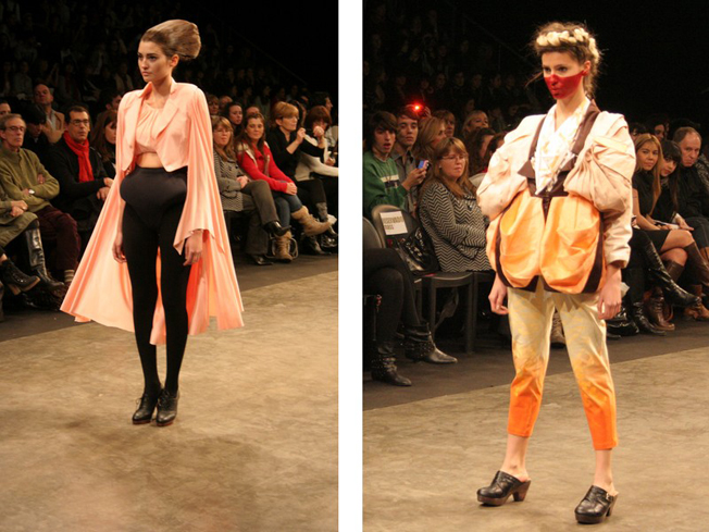 Las semanas de moda son el anbiente perfecto para los fashionistas osaren en sus looks sin timidez, como pueden ver los chicos de arriba y el de abajo, Santiago Artemis, estudiante de indumentaria tiene 21 años, fue uno de los que mas se destacó en medio a la multitud y probó tener contenido: “Lo que llevo hoy puesto es un top con maxi hombreras redondas y alforzas en el pecho con un pantalon tiro alto pinzado con triángulos rectos en ambos costados. Me inspire muchísimo en una pelicula de disney de los años 40’s sobre la geometría y sobre un libro de los años 60’s del movimiento swinging london, que justamente se referia a la cuestion de asimilar la geometria en prendas. Para finalizar, un sombrero con frunces y moños en la cabeza. Todas las prendas diseñadas y hechas por mí y mi abuela que me ayudó con la prolijidad de cada pieza”.