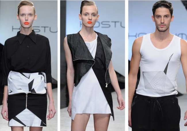 La marca viene a algunas colecciones executando la geometría y conbinación de telas como el cuero y algodón en sus prendas, toda en blanco y negro, “inspirados en el plano 3D, los dibujos simulan planos futuristas”. Coherencia. Se vio aca una de las tendencias de verano para maquillaje, rostro limpio y boca bien marcada.