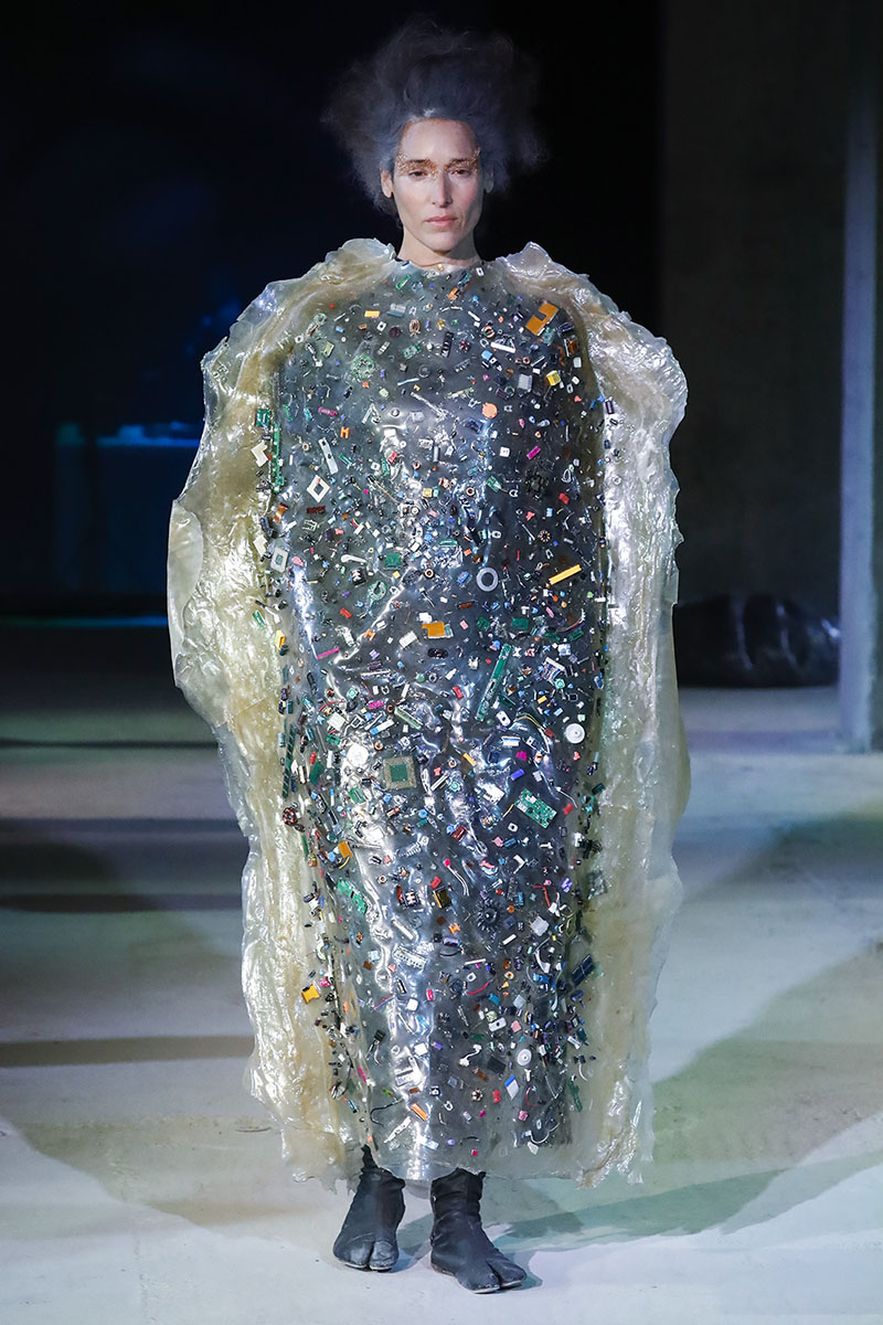 ¿De dónde sacáis los materiales con los que trabajáis las piezas? ¿Hay mucha prueba y error por la dificultad de trabajar materiales no convencionales? Obtenemos los materiales de ámbitos muy diversos. Desde materiales reciclados que rescatamos en vertederos como material electrónico o papeles, materiales que vienen del ámbito de la arquitectura como aislantes térmicos, acústicos o láminas decorativas, materiales naturales como sisal o hojas o pétalos caídos, siliconas o resinas, materiales biofabricados, filamentos de pla para impresión 3d…etc. Todo ello lo trabajamos primero a pequeña escala a modo de muestras de “laboratorio”. El proceso de pruebas y errores es muy importante y una constante en todos los proyectos. Trabajar con materiales poco comunes en moda presenta muchos retos que son muy interesantes y de los cuales aprendemos mucho. La base de Buj Studio es la investigación y experimentación material, aprendemos del proceso y nos dejamos sorprender por los materiales que, en muchos casos, nos guían en la toma de decisiones.