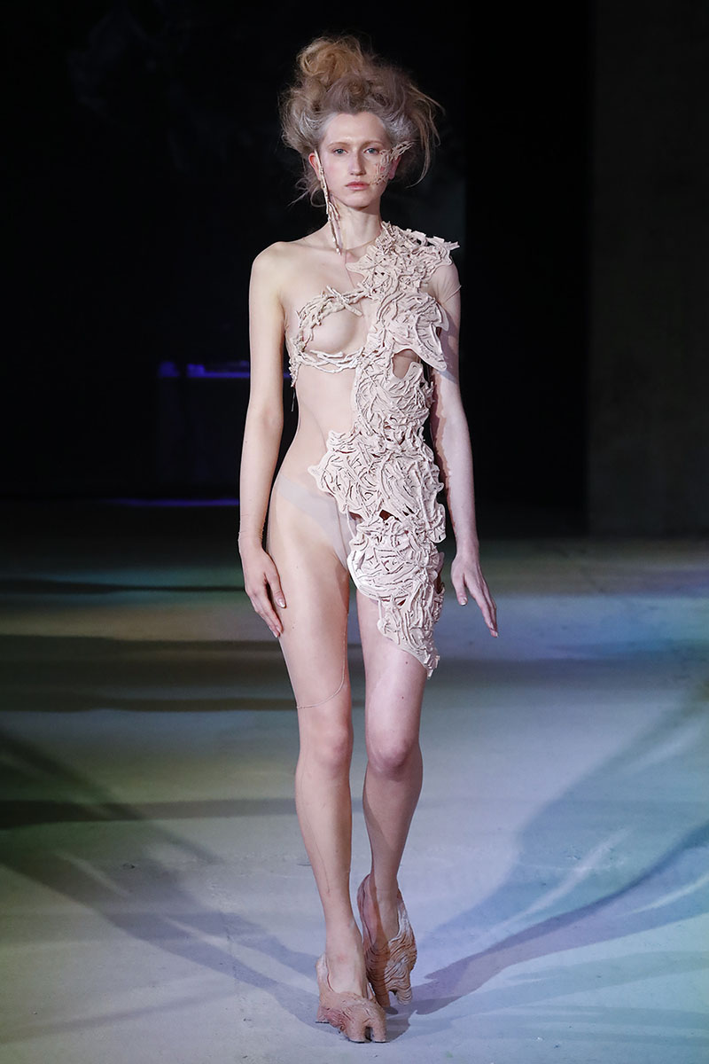 ¿De qué manera/s has seguido implementando la tecnología dentro de la moda en tus últimos proyectos? En la última colección, NIDOS, la tecnología también ha estado presente, acompañada a su vez de procesos artesanales. Ha siso muy importante para mí explorar el trabajo con la tecnología de una manera “orgánica”. Nos inspiramos en la manera que ciertos animales depositan materiales del entorno para construir sus nidos, así como en la textura generada al manipular el material con la boca. El diseño paramétrico fue clave para poder definir esta geometría orgánica y cambiante. A su vez, la impresión 3d nos ayudó a materializar las distintas texturas. Quisimos buscar en las herramientas de fabricación digital, normalmente usadas para acabados perfectos y controlados, texturas orgánicas e imperfectas. Buscando el error o la imperfección en la impresora 3d, texturas que nos recordaran al material masticado por los animales y a los hilos de seda.