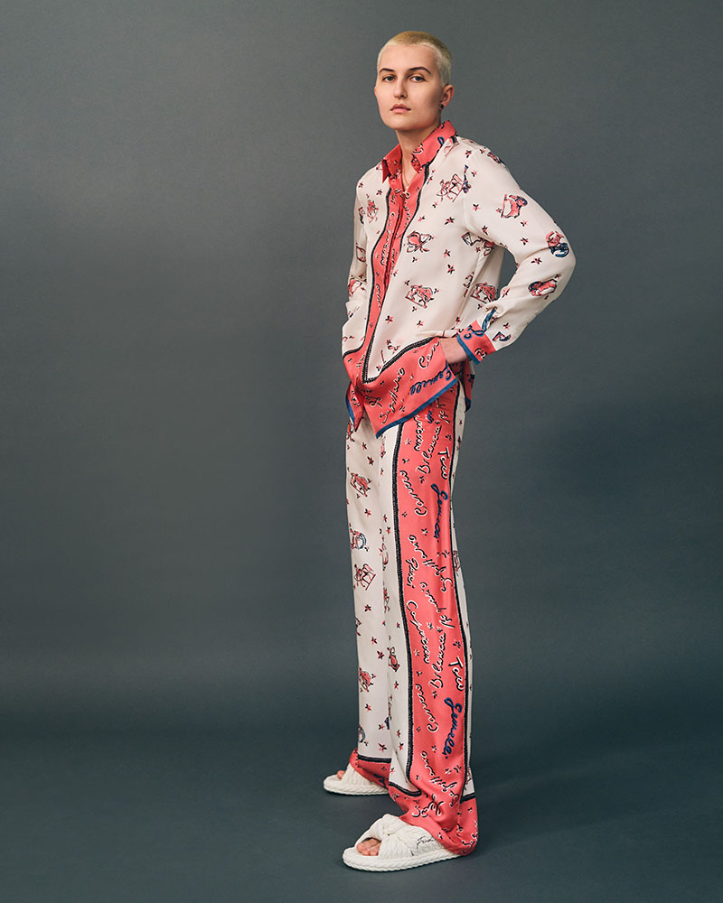 La colección de camisas estampadas y beachwear Fendi Astrology viene encabezada por, lo habéis adivinado, camisas estampadas. Presentadas con cuello camp y corte oversized, estas camisas de seda son ideales su para el verano gracias a su divertido diseño y fluidez. El estampado per se reimagina los diseños de Lagerfeld y muestra los animales zodiacales con estrellas y sus nombres escritos en italiano e inglés. Para complementar el look, se ofrecen bermudas y bañadores a juego. Y para quienes les guste el azul, habéis encontrado vuestro staple de temporada; pero si os gusta el look de la camisa de manga larga, Fendi Astrology también propone una silueta de este estilo, a juego con un pantalón largo.