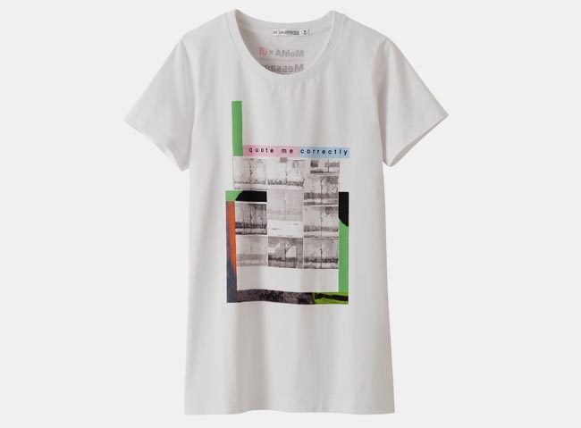 Para ti que siempre estás a caballo, entre Nueva York y dónde sea. Uniqlo (mega fabricante y retalier japonés de casual wear) celebra su tercera tienda en Manhattan con la producción de una edición limitada de camisetas en colaboración con el MoMa (Museo de Arte Moderno de Nueva York). Los diseños estas firmados por artistas emergentes seleccionados por Klaus Biesenbach, director y comisario del MoMa. Entre ellos se encuentran Detext (dúo hispano-rumano viviendo cada uno en Nueva York y Berlín), además de Matthew Brannon, Franklin Evans, Liz Mogel, Emily Roysdon… La línea ha sido bautizada con el nombre de MoMa x UT “Message Art Now”. Solo se podrán comprar en la tienda del museo. Precio: 19,9 dólares (están tiradas), las ventas se dedicarán íntegramente a financiar las actividades del MoMa.