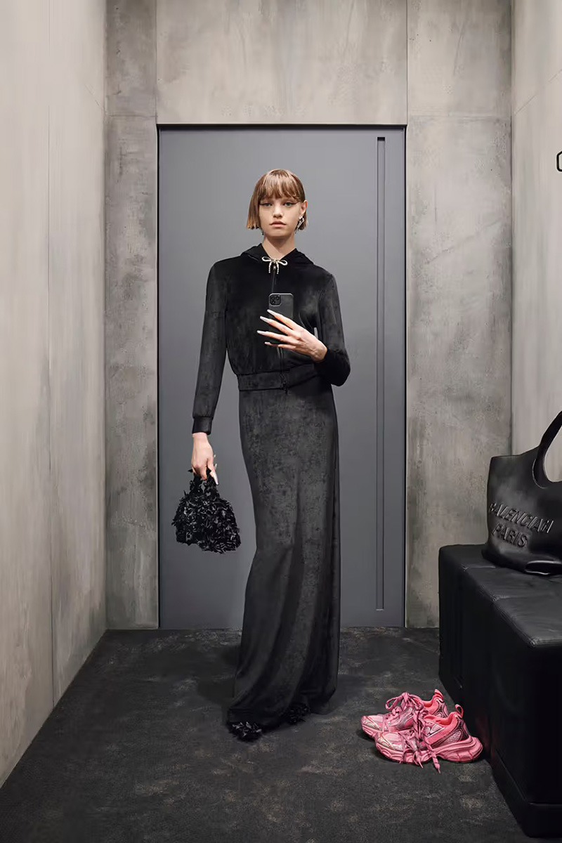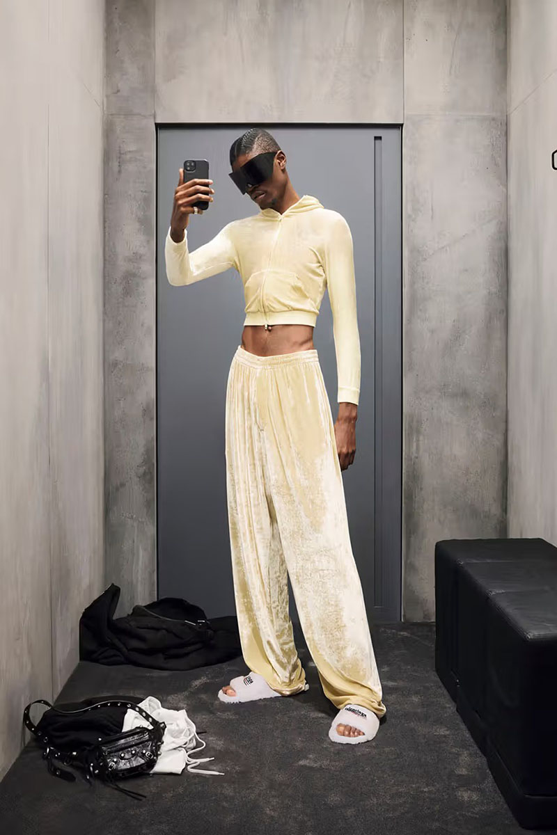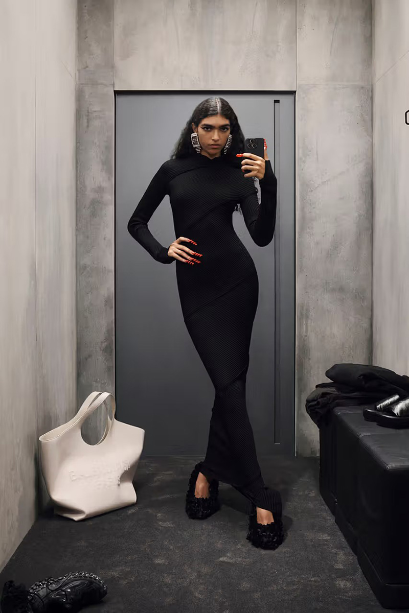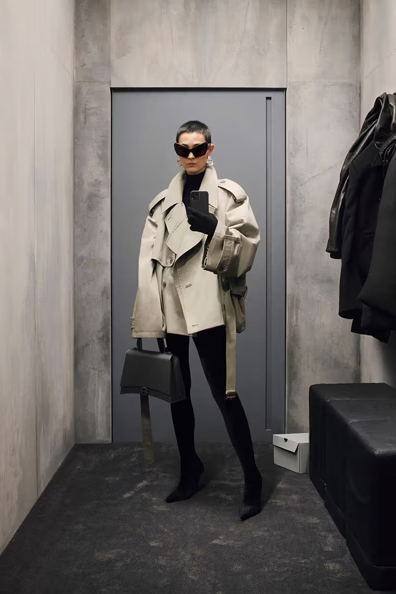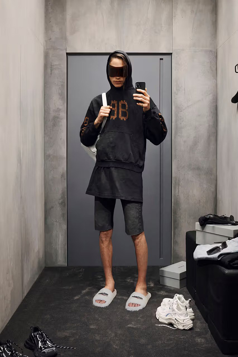 La nueva campaña de Balenciaga para Fall 23 se pone bastante costumbrisa, mostrando a los modelos como clientes que se están probando las prendas y haciéndose fotos; así como las que hacemos unos cuando necesitamos aprobación de nuestros amigos antes de pillarnos algo. Estos 30 looks que vemos son salidos de la colección que vimos recientemente desfilar en (tal vez) el evento más understated de la firma bajo la dirección de Demna y pensando ya en el otoño. Para tranquilidad de muchos, esta nueva campaña parece devolver ese velo de moda urbana a Balenciaga que creíamos haber perdido al ver la colección FW23-24 en París. Las piezas pulidas están ahí; pero se han canalizado acorde con lo que muchos consideramos como el mayor valor de Demna: su lenguaje subversivo, urbano y distópico.