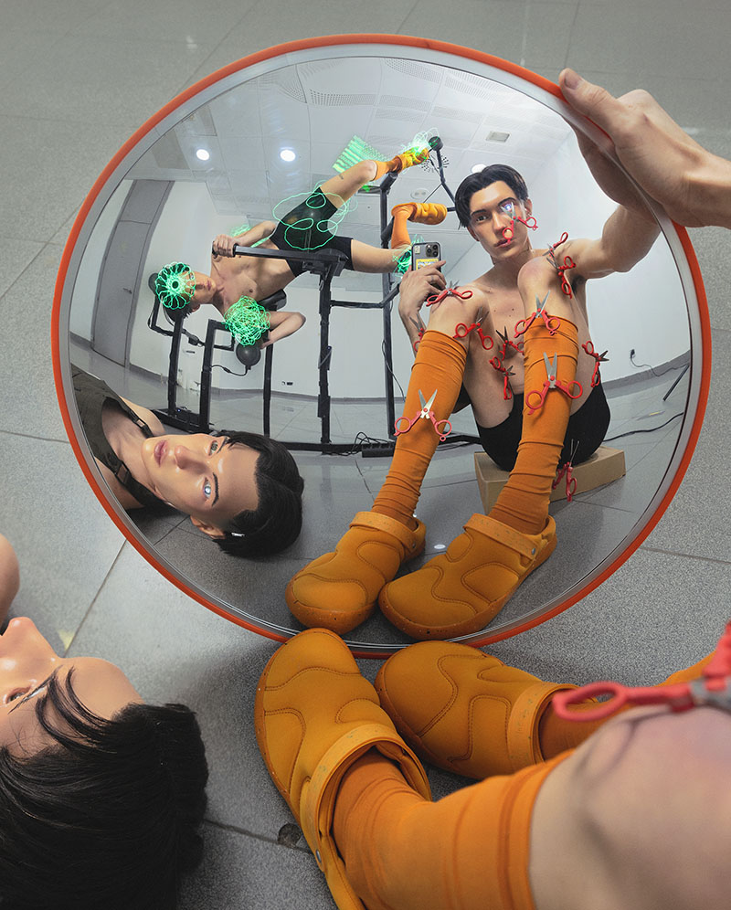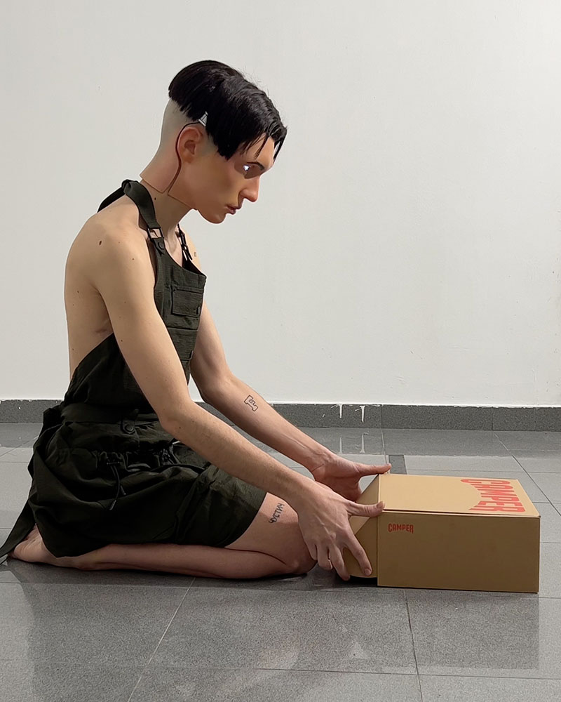 Para celebrar esta unión, se ha sumado la intervención del artista Filip Custic. El artista basado en Madrid ha imaginado una serie de visuales digitales inspiradas en el mood creativo que comparten ambas marcas. Esta intervención también se materializa en una instalación de una estructura metálica que juega con la figura humana (de maniquíes) e incorpora elementos de proyección holográfica.