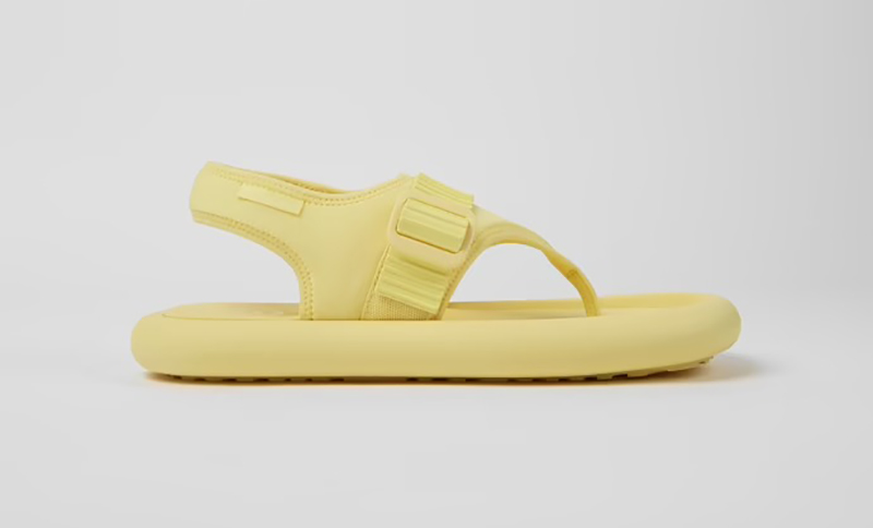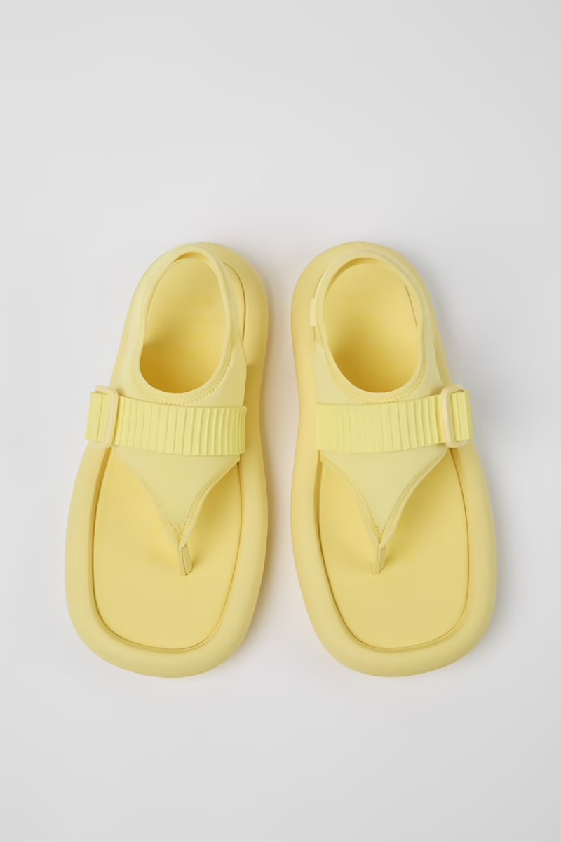 Como otras siluetas de la colección, se ofrecen en negro y tienen un color único a cada silueta. El de esta sandalia de neopreno minimalista es el amarillo sorbete. Un tono pastel y muy veraniego ideal para darle un toque de color a cualquier estilismo de verano. Aquí no hay puntos a contraste… es una apuesta monocromática; incluso las etiquetas y logos van tono sobre tono.