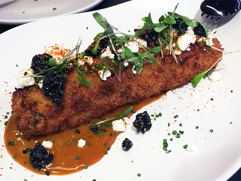 Imagen superior: parmesana de entrecot a la coreana, hierba y feta