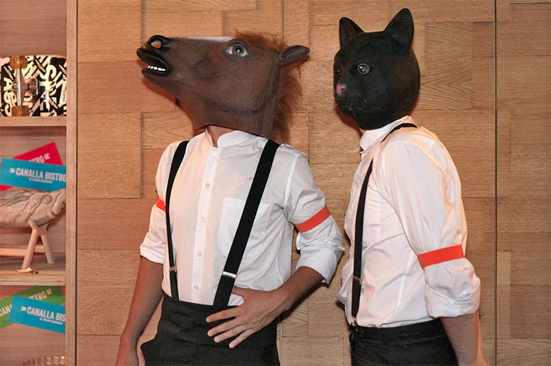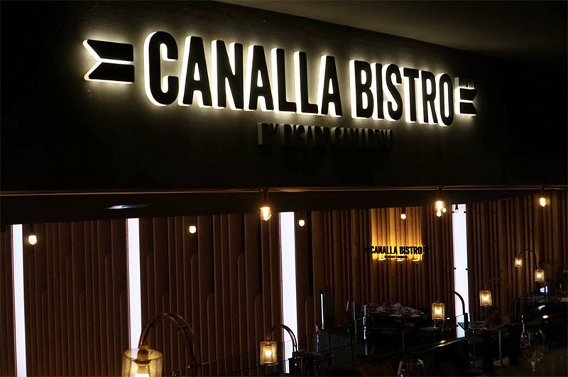 Imagen superior: grafismo a la entrada de Canalla Bistro