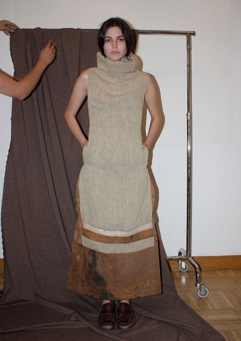 Las prendas reflejan el acto de cortar, unir y reconstruir materiales y telas para crear una nueva personalidad e identidad. Utiliza el raw-look como herramienta reveladora del tiempo de elaboración en contraposición a la producción en masa. Un engranaje que posee su eje central en la sostenibilidad.