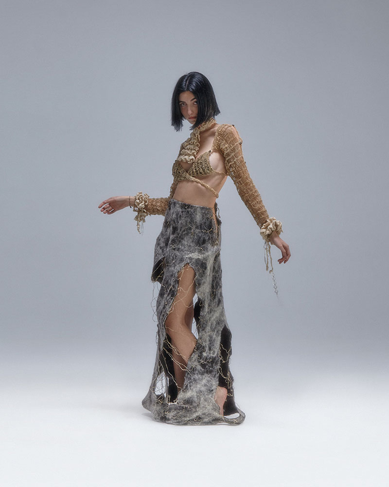 Colección: El concepto de Asamse, colección con la que optan al premio Mercedes-Benz Fashion Talent, es la transformación. Algo constante en la vida ya que el dolor, las emociones negativas, las situaciones adversas e incluso el entorno pueden llegar a destruir a la persona, pero de esa destrucción puede surgir una nueva versión de ti mismo.