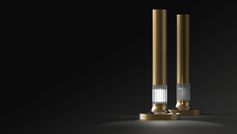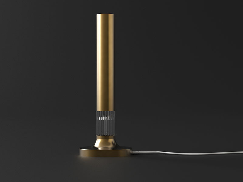 Canneté tiene una estructura de líneas estilizada y esbeltas, compuesta por un cilindro de latón y vidrio estriado. El desafío técnico para la realización de esta lámpara fue lograr que las dos partes de “latón-vidrio” fueran cohesivas. Mediante un diseño preciso se consiguió que el latón y el vidrio se integran y fusionan sin problemas, sin que haya ningún desprendimiento visible entre ellos. Aunque la colección está compuesta de varios modelos, la que más nos gusta es este modelo de lámpara de mesa, perfecta para crear un ambiente íntimo en un café o restaurante.