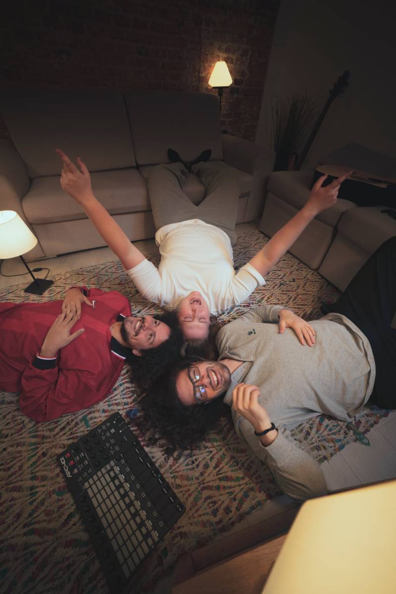 Nos encanta trabajar juntos en total sintonía, sin embargo las labores donde cada uno destaca son relativamente claras. Omar y Beni tienen el control de las DAWs (programas de producción musical como Ableton, Logic o Pro Tools) y eso se nota mucho en nuestros temas, sobre todo por el amplio conocimiento que ambos tienen de música electrónica y sus diferentes géneros. Luego a nivel instrumental, Omar tiene una afinidad por la percusión bastante notoria, mientras Benito es un guitarrista fenómenal, con una escuela flamenca que se percibe al momento en que marca un acorde. También se desempeña con el bajo, donde saca a relucir sus dotes funky sin temor alguno jaja. Yo (luislo) aparte del canto, comparto labores de guitarra con Benito y también toco el ‘cuatro llanero’, un instrumento de mi tierra que es divino y siempre suma a nuestras producciones. Luego a nivel de composición mi fuerte está en el desarrollo de las letras, conceptos y melodías.
