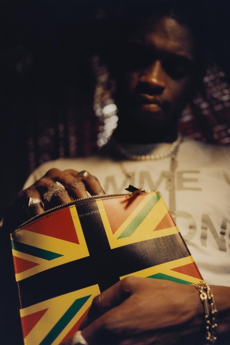 Los detalles de modelos de Denim Tears X Comme des Garçons Wallet son escasos. Pero, podemos intuir que los distintos motivos estarán disponibles en los formatos habituales de CDG Wallet. Las imágenes de la campaña muestran como estrella el modelo mediano Zip Pouch decorado con una guirnalda de formato maxi. En el mismo modelo, también encontramos una versión estampada con la bandera Union Jack en los colores de la bandera panafricana. Como es de costumbre, todos los modelos de la cápsula se elaboran en piel de cordero y cremalleras doradas.