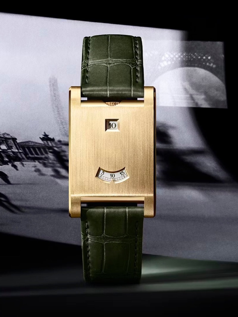 Pero ahora a lo importante: el nuevo Tank à Guichets de Cartier Privé. En cuanto a su construcción, se rescata el diseño original de caja cuadrada de 37,6 x 24,8mm. En cuanto a materiales, tenemos variantes en oro rosa, oro amarillo y platino. Dentro, nos encontramos con un nuevo mecanismo 9755 mc de cuerda manual con horas saltantes y minutos continuos. Ese calibre mueve un sistema de discos numéricos que dejan ver la hora a través de las aperturas (o Guichets). De igual manera, los perfiles laterales a modo de pilares se mantienen.