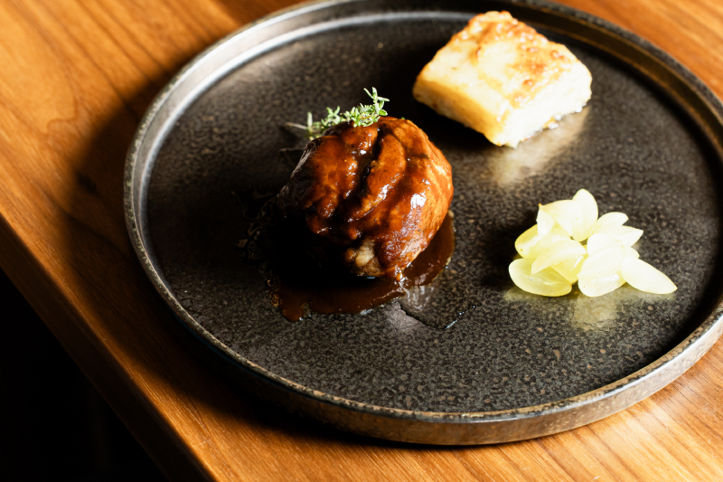 El humor también está presente en los nombres de los platos. Un ejemplo es el Peus de Ministre, un guiso de manitas de cerdo con su crepina rebozada, setas de temporada y parmentier de patata infusionada con salvia (22€).