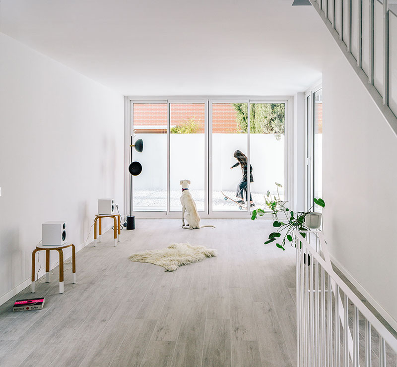 ¿Puede una vivienda unifamiliar contar con una anchura máxima de 4m? La respuesta parece ser afirmativa si atendemos al proyecto del estudio madrileño Murado & Elvira Arquitectos. En una parcela estrecha y alargada, a las afueras de Madrid, se emplaza Casa Galgo.