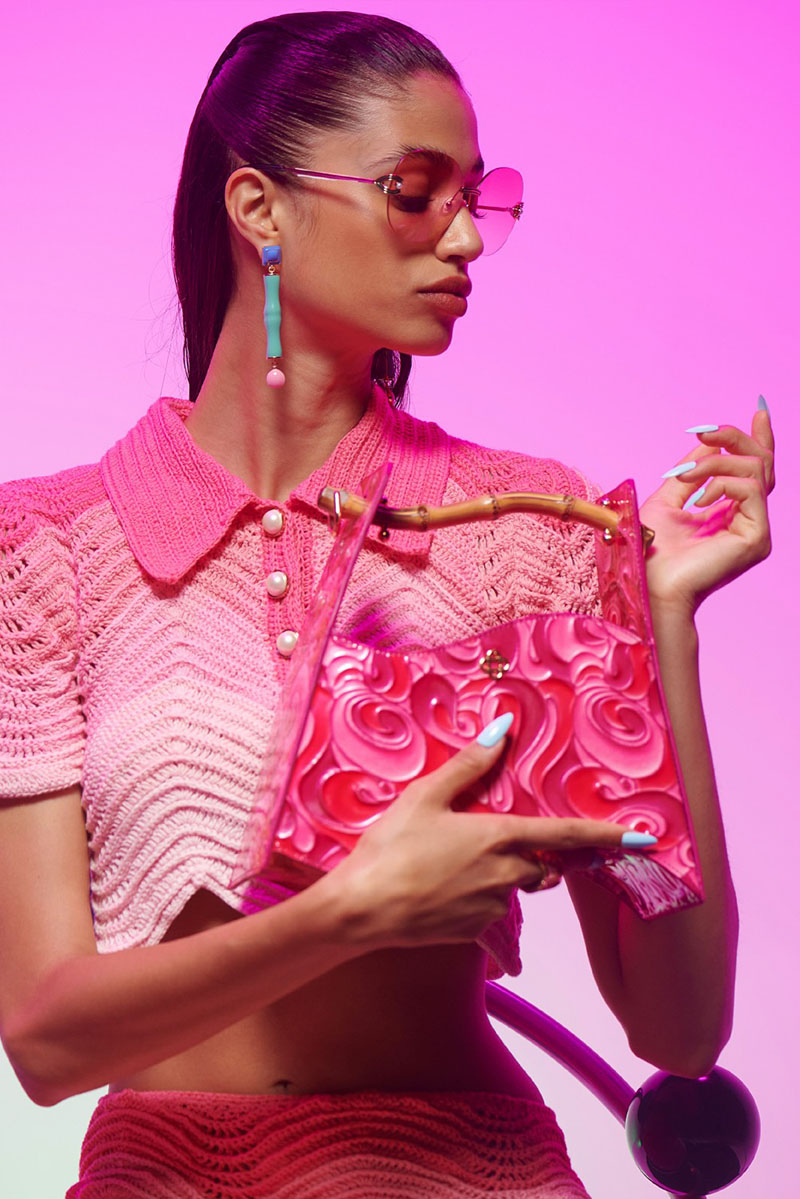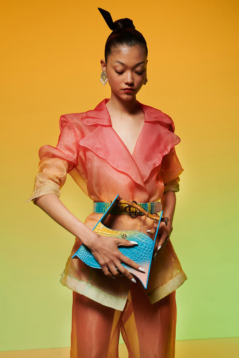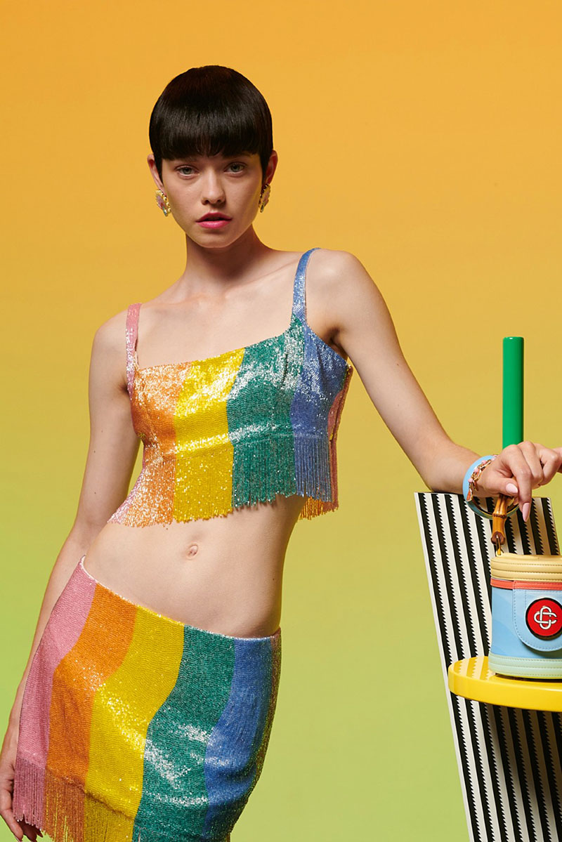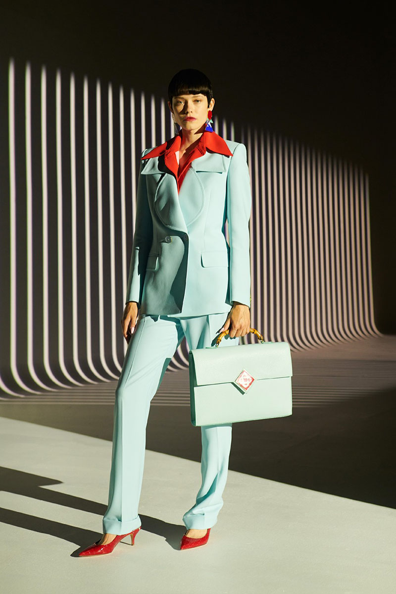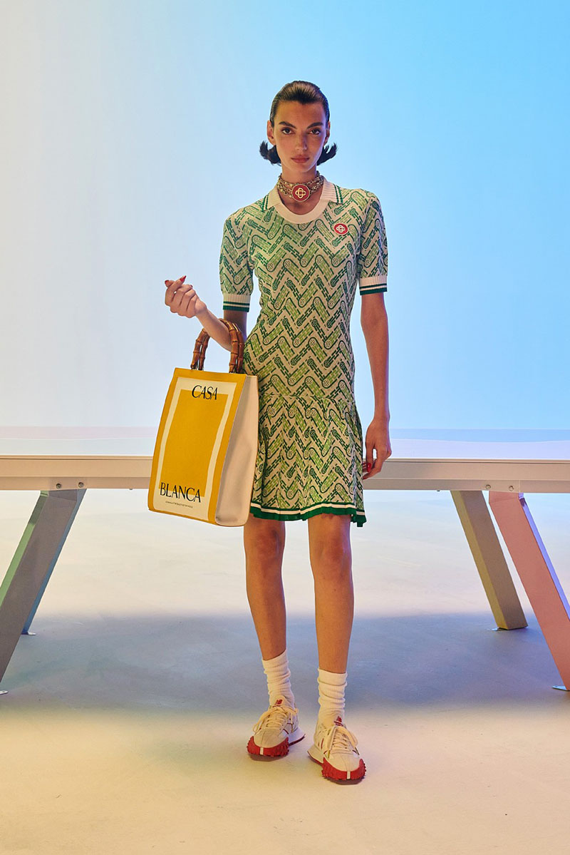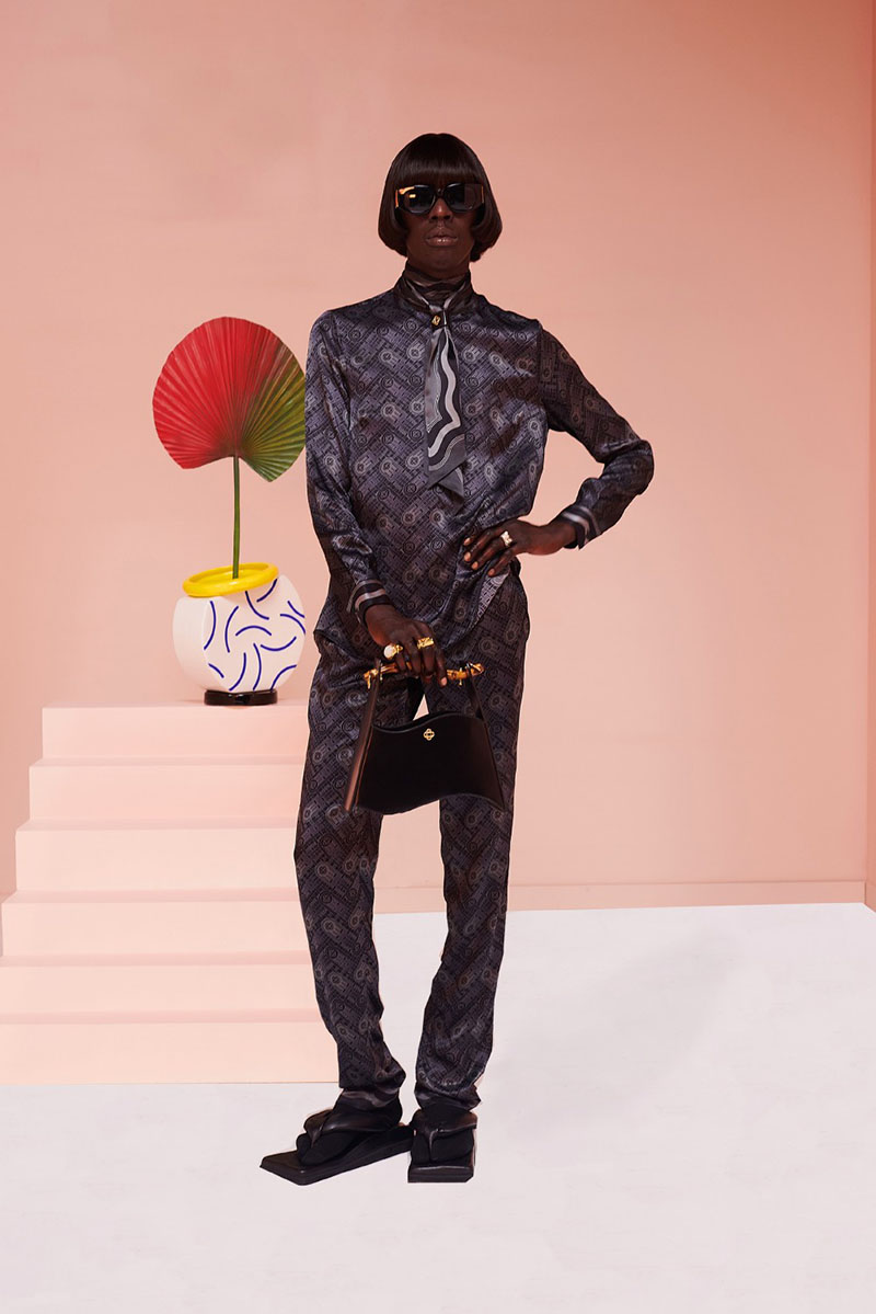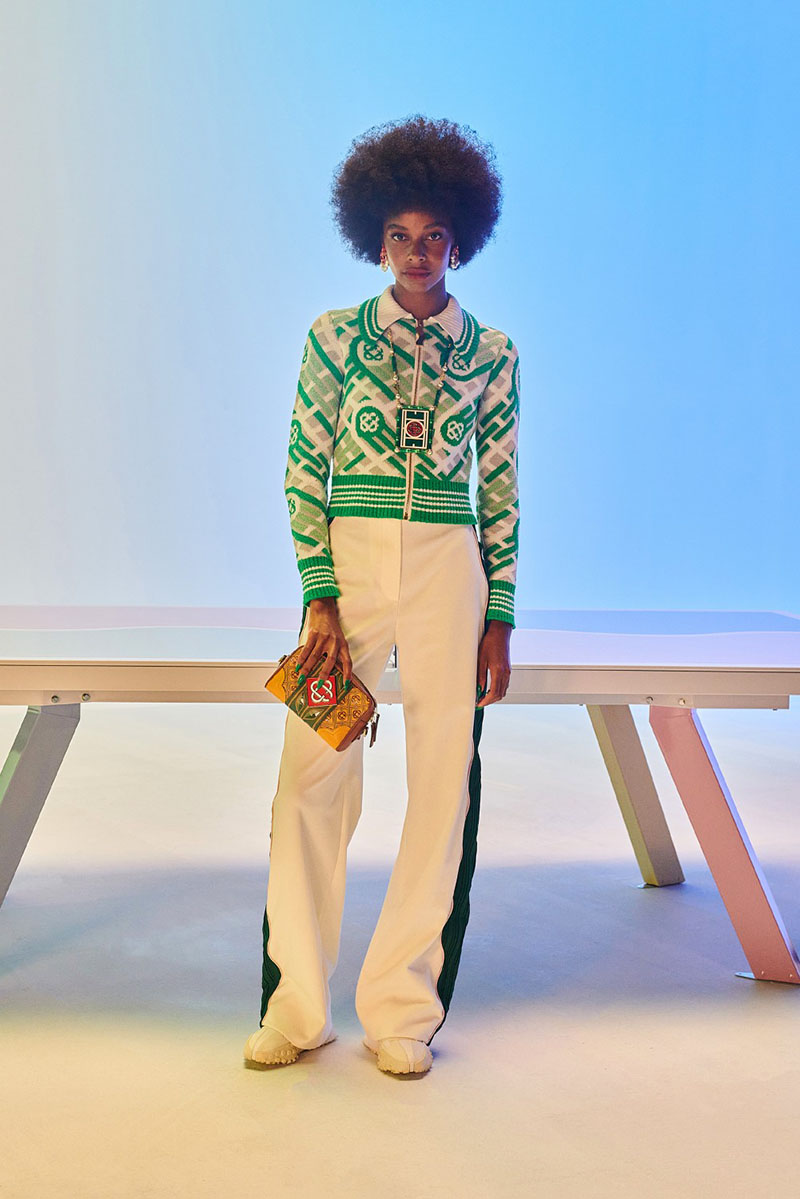Otro de los puntos fuertes de Casablanca vuelve a brillar por sí solo; nos referimos a los accesorios, que aunque presenten unos looks en los que parezca que no es necesario añadir ni un detalle más, se siguen agarrando a la filosofía del más es más con la que consiguen dar un toque extra de locura a esta colección solo apta para los más atrevidos. Estamos hablando de pendientes, gafas de sol, anillos, pañuelos, e incluso bolsos inspirados en las clásicas tarteras Bento Box japonesas.