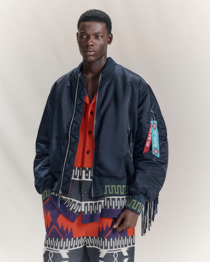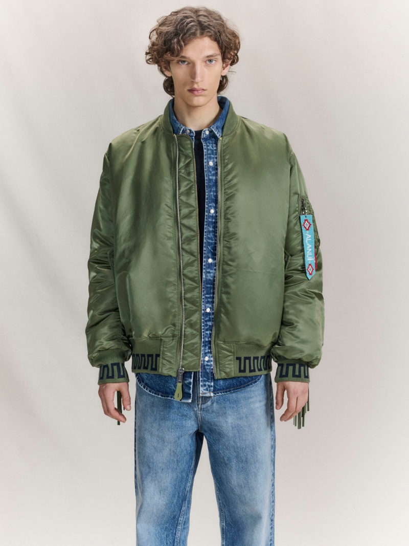 Alanui interviene la icónica bomber MA-1 de Alpha Industries con su lenguaje artesanal y vintage americana, creando la versión más original de esta prenda.