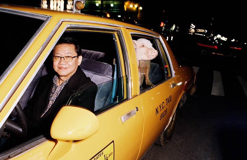 En la campaña editorial las imágenes, obra del fotógrafo Frank Lebon, capturan a una serie de personajes que disfrutan de sus lujosas vidas neoyorquinas en compañía de sus cerditos mascota.