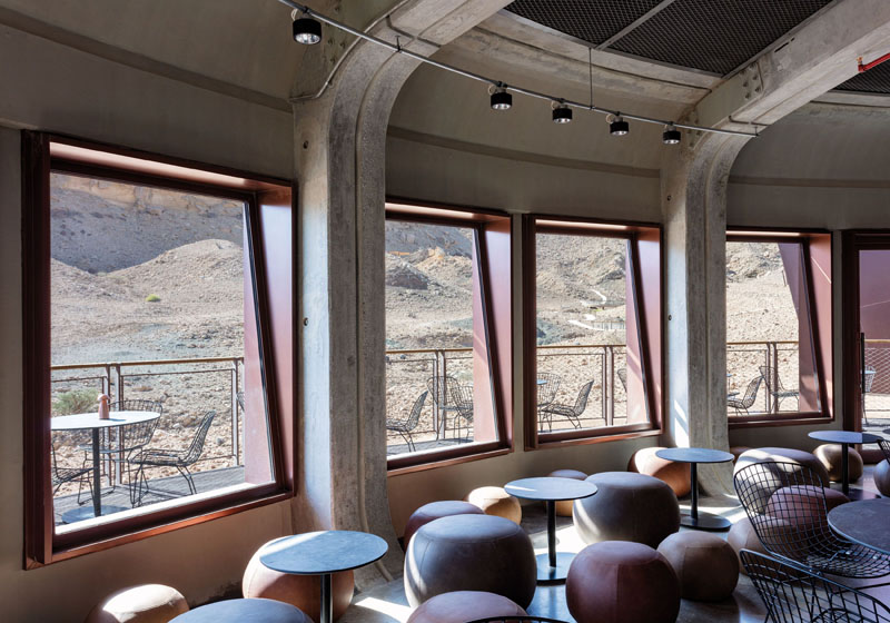 Son cinco módulos de hormigón revestidos con paneles de acero. Para minimizar el impacto ambiental con la fauna, la geología y el terreno existentes, las cápsulas se diseñaron como estructuras de hormigón prefabricadas y solo tocan ligeramente el suelo en los discos de cimentación de hormigón armado in situ. Las construcciones están revestidas con paneles de acero para dar sombra a las estructuras de hormigón, y se pintaron para una mayor integración con el paisaje circundante. Estos paneles están fijados en una serie de nervaduras de acero, lo que les da a las cápsulas sus distintivas formas escultóricas en voladizo y hacen referencia al exoesqueleto de los fósiles de erizo.