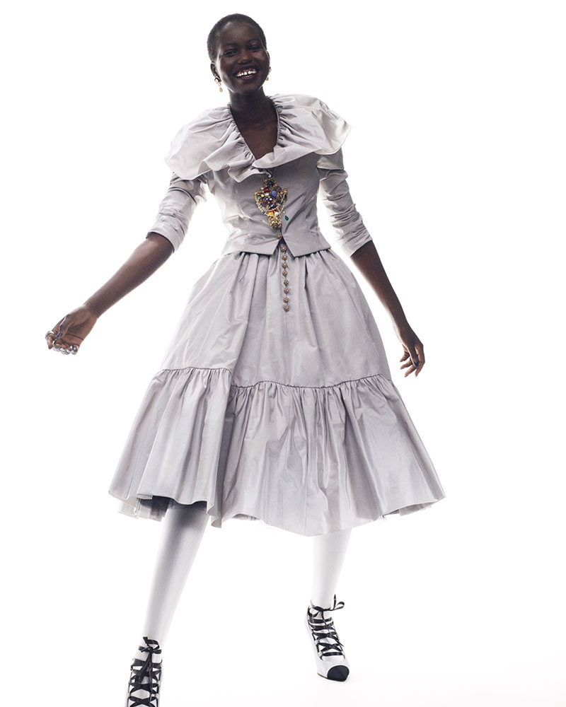 La inspiración hacia el mundo de Karl queda reconocida en las formas, en las siluetas y en esas referencias hacía el tipo de mujer que creo Lagerfeld durante todos sus años al frente de la Maison. Esas aristócratas y señoras de la alta sociedad que disfrutaron jugando a ser rebeldes por un instante. Esas jóvenes princesas que iniciaban su camino en sociedad y que mezclaban el estilo de de la Alta Moda con sus gustos de juventud.