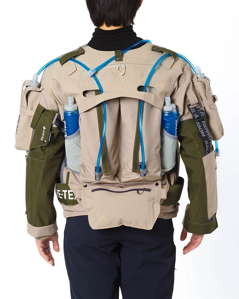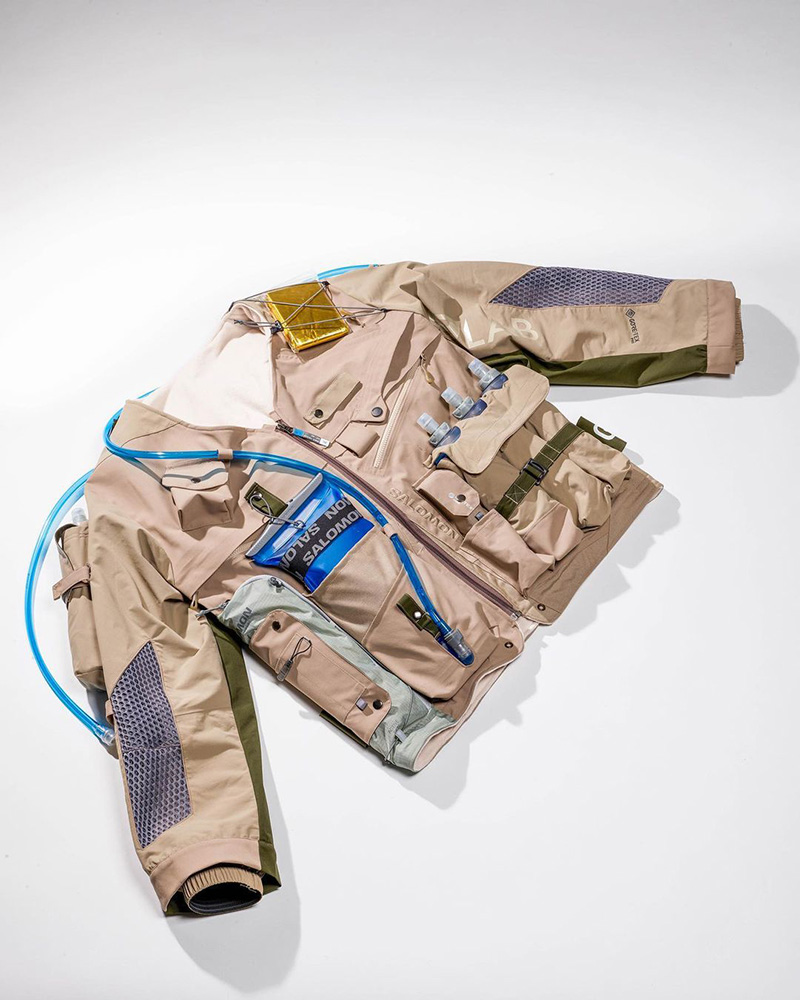 El internet se está volviendo loco con la más reciente colaboración de Salomon X Greater Goods. Se trata de una chaqueta de streetwear en su clave más utilitaria construida con una infinidad de bolsillos, botellas y packs de hidratación. Es la mezcla perfecta entre la tendencia de senderismo y techwear.