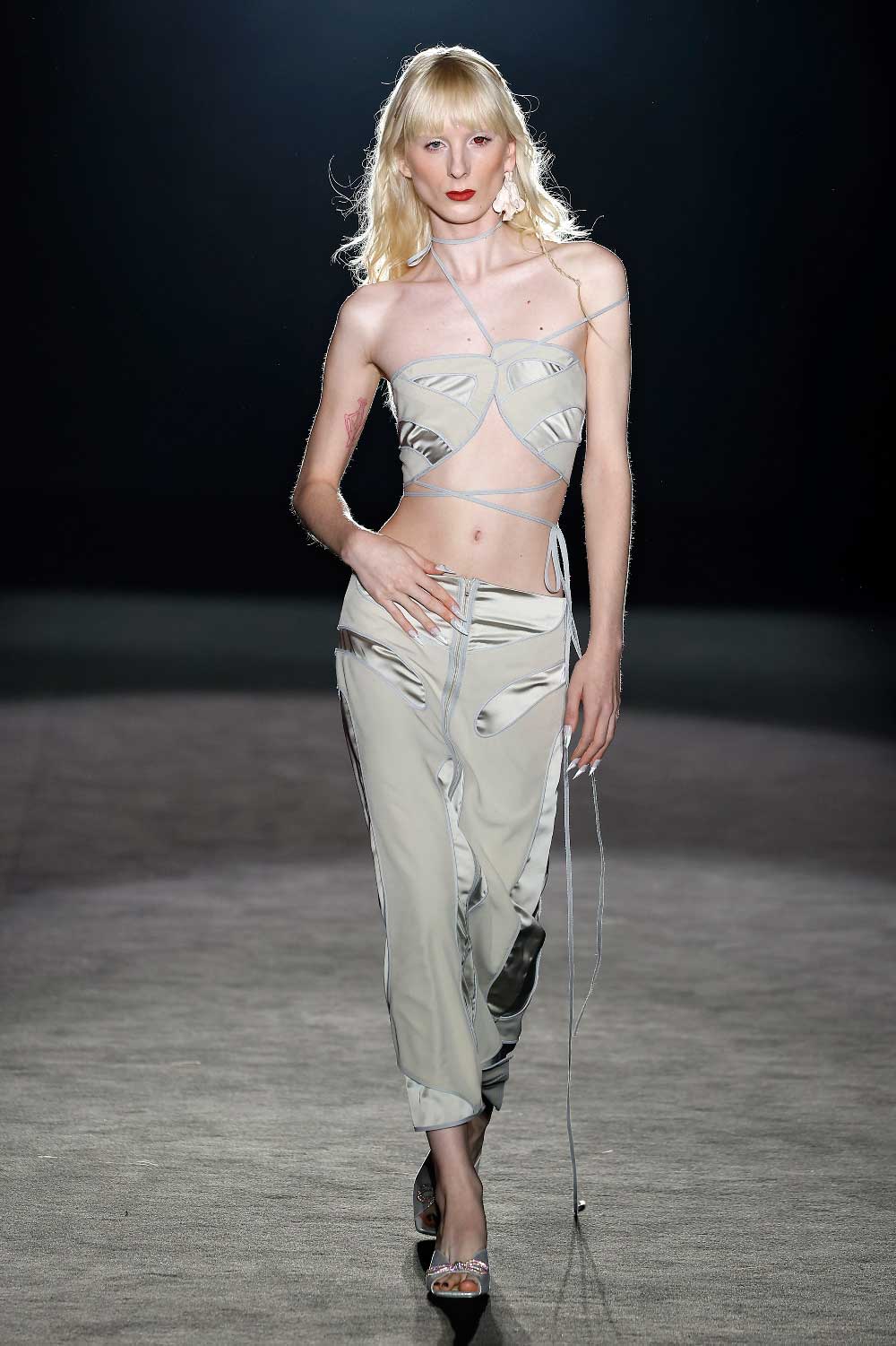 Sevillana con una fijación conceptual por la mitología griega en sus colecciones. Ella es Irene Romero Massia, nacida en 1995, y Cherry Massia es la marca de moda que dio a luz en 2017. Desde entonces ha vestido con sensualidad e inteligencia a grandes féminas y artistas. Desde Milena Smit a Nathy Peluso. Pero quizás, la colección Eros y Psyche presentada en 080 Barcelona Fashion es, hasta la fecha su propuesta más poderosa y sofisticada. Diseños de noche con referencias underground para personas orgullosas de su cuerpo y de su cerebro.