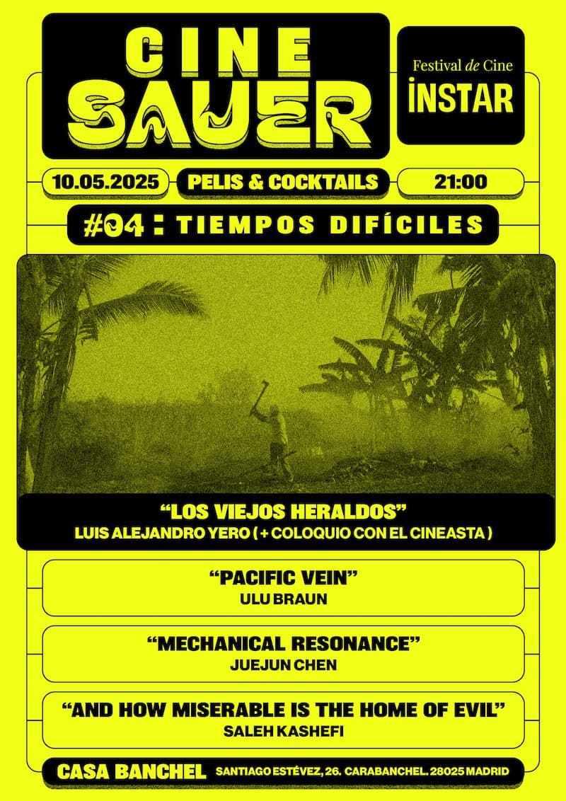 Para cuarta edición CineSauer se alía con Instar, el festival de cine del Instituto de Artivismo Hannah Arendt, fundado por Tania Bruguera. En estos tiempos raros, colaborar es una forma de cuidado mutuo, un gesto entre afines para plantar cara a la censura y resistir frente a este mundo cada vez más sombrío. Este mayo en Casa Banchel y a través del cine se nos invita a reflexionar sobre cómo nos enfrentamos a nuestras pesadillas contemporáneas.