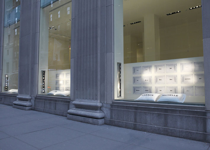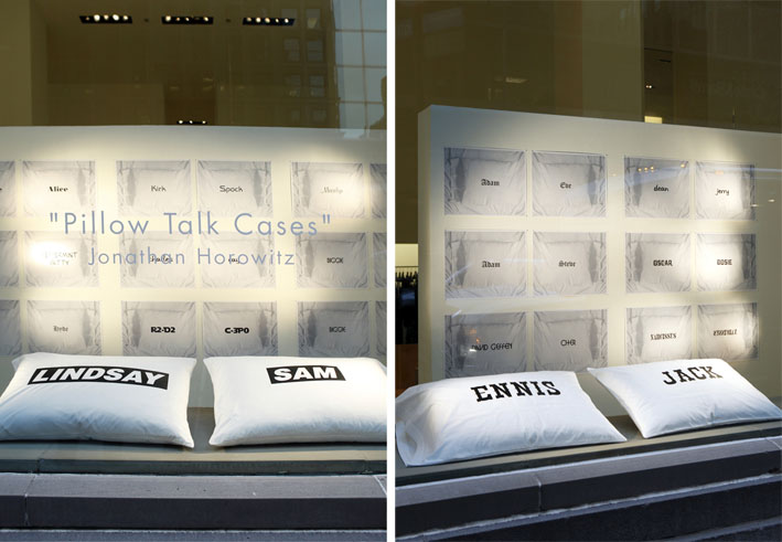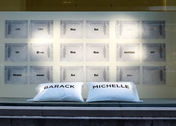 Los habitantes, turistas o sencillos paseantes de Nueva York están de enhorabuena. El arte ya no sólo llega a la calle -de la que hace tiempo que se apropió- sino que, además, ahora invade los escaparates. Y no uno cualquiera, el de Clavin Klein. La firma ha donado una selección de fundas de almohada con el fin de promocionar, mediante éstas, el trabajo del artista Jonathan Horowitz, y, más concretamente, de su última obra, que tiene forma de exposición retrospectiva y que lleva por nombre “JONATHAN HOROWITZ: And/Or“. La edición limitada de estas fundas está serigrafiada con nombres de parejas de celebridades con gancho publicitario, como por ejemplo “Barack” y “Michelle”, “John” y “Yoko”, o, sin ir más lejos, “R2-D2” y “C3-PO”. Las fundas durarán a la venta lo que su exposición, de manera que cada mes irán cambiando los nombres de las parejas famosas. Visto así, no sabemos si fue el arte quién invadió el escaparate de Calvin Klein o si fue Calvin Klein quien metió sus narices en el arte. Aunque bien pensado, qué más da, con resultados como este…