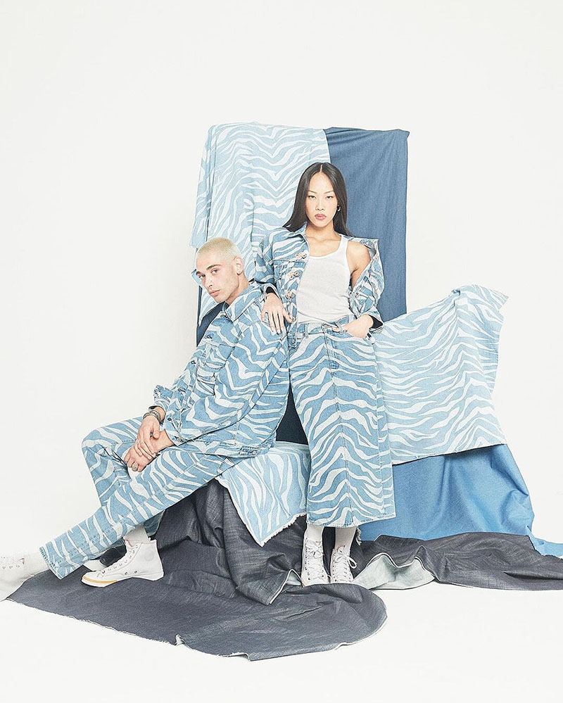 Para la campaña han querido contrastar el fuerte estampado de la colaboración con un gran telón de patchwork que no solo acentúa el animal print, sino que también sirve para hacer un homenaje al origen del denim de Levi’s y su amor por las customizaciones en sus piezas a lo largo de la historia.