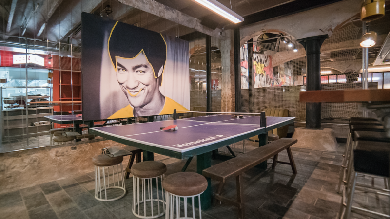 Imagen superior: Mesa pin pon del Jungle Room de Clubhaus