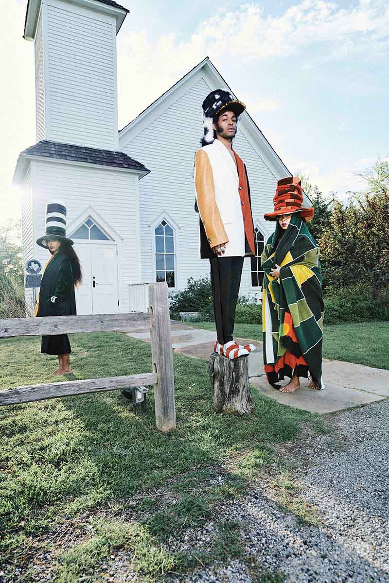 Esta unión de maximalismo soul y códigos artesanales se traduce como una colección multisensorial. Las prendas, creadas con técnicas y tratamientos de alta costura en mente, se han concebido para deleitar más allá de los ojos. La textura es uno de los puntos fuertes en la colabo de Marni X Erykah Badu. La colección nos ofrece pilares del womenswear llevados al extremo en una caótica armonía donde americanas oversized y vestidos de punto rematados con parches de cuero conviven con capas tejidas a rayas y botas metálicas. Lentejuelas maxi, lujosos terciopelos y lana gruesa se unen también a esta sinfonía. Otros pilares fundamentales del estilo femenino como vestidos lenceros, camisas y faldas con pedrería se ven presentes.