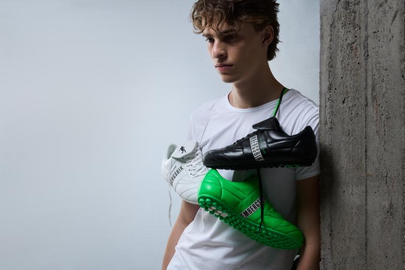 La firma de Bikkembergs ya hacía sus propios homenajes a lo futbolero y a lo sport mucho antes de que se convirtiera tendencia. De hecho, su silueta Soccer lleva formando parte del léxico de la marca desde los años 90; como su propio homenaje al estilo y la cultura terrace, claro. Pero lo que vemos ahora de parte de esta colaboración no es solo un intercambio de logos y un nuevo juego de colorways; es un makeover integral de la silueta og.