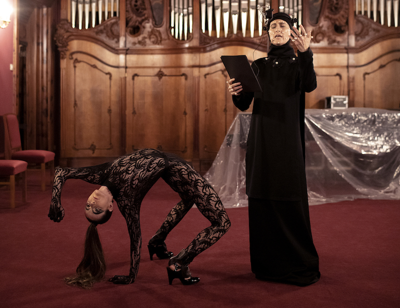Rodeada de paramentos textiles y de mobiliario barroco y ataviada con una cámara adosada a la cabeza e indicadores en el rostro para la captura del movimiento óptico, la actriz principal, Anna Sabaté, representa el VIH/sida, agente causante y enfermedad. Décadas antes de la irrupción del VIH o del SARS-CoV-2, el escritor francés Antonin Artaud habría entendido intuitivamente el ritual visceralmente productivo de hacerse pasar por un virus y personificar su transmisión por proximidad.