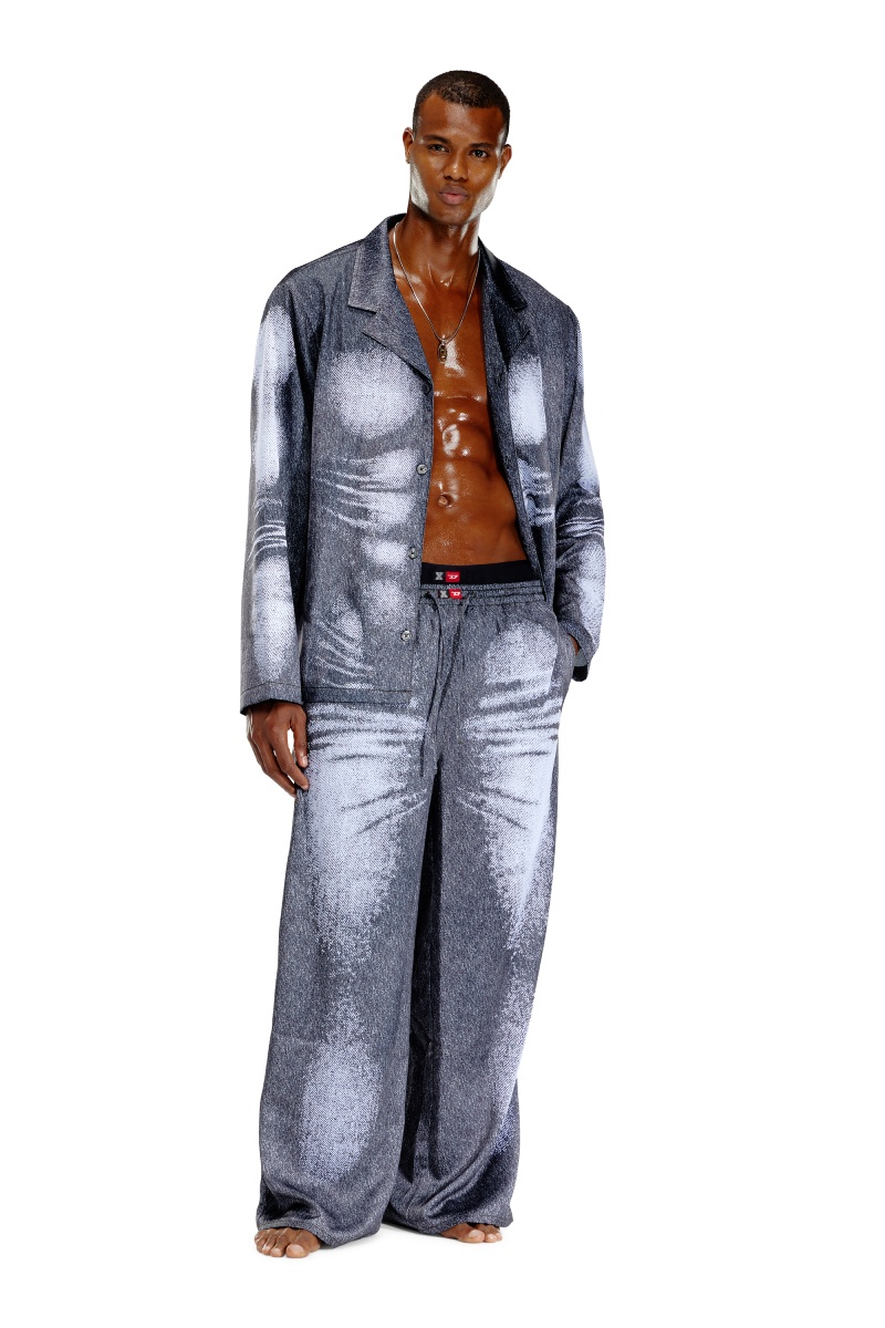 Por el otro lado, Denim de Diesel X Savage X Fenty responde al core de la identidad de la casa, con trompe l’oeils de tela vaquera y acabados de transparencia high street que conocemos de sus desfiles. También esta sección presenta acabados de colores saturados y flúor. Y cerrando los conceptos, tenemos Utility. Esta gama se enfoca en crear sheer de camuflaje y detalles de graffiti en paletas de color neutrales.