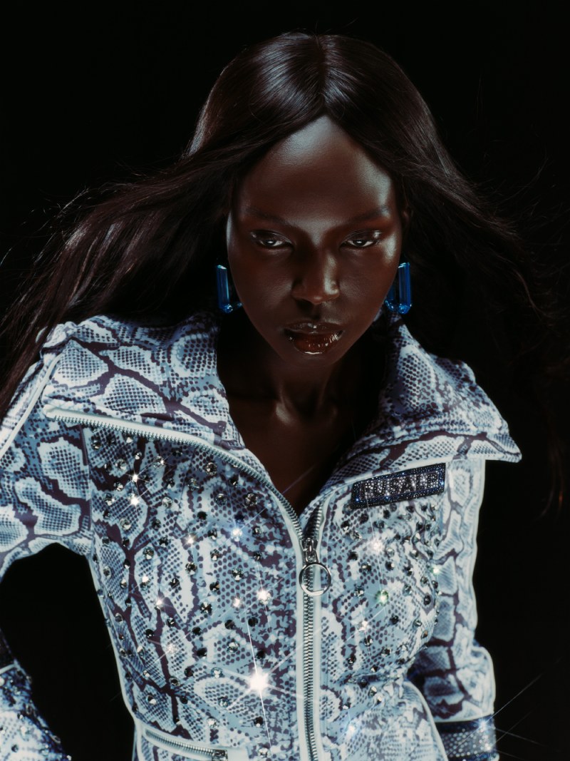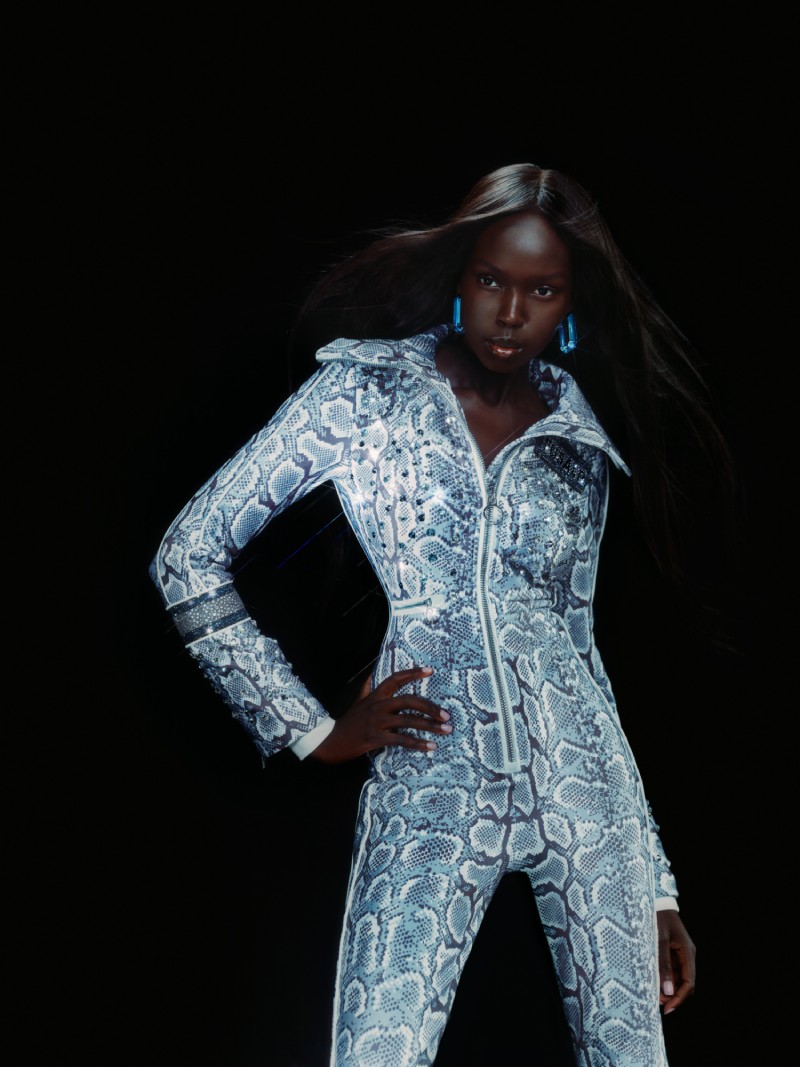 Para esta temporada, la firma de ropa de ski le da la bienvenida a la nieve con una impresionante (y un tanto histriónica) entrega colaborativa junto a Swarovski. Los detalles especiales de esta colección son, a parte de una construcción adornada con cristales, el print de las prendas. Sumándose a la corriente de la nostalgia por los 2000, la colección se decora con un estampado de piel de serpiente, para traer de vuelta el Y2K a los picos nevados.